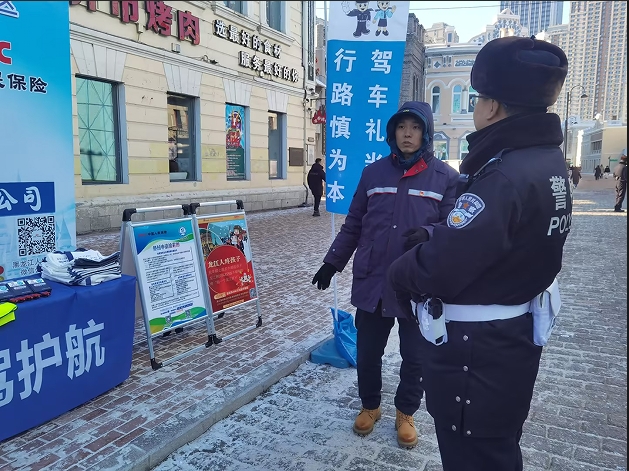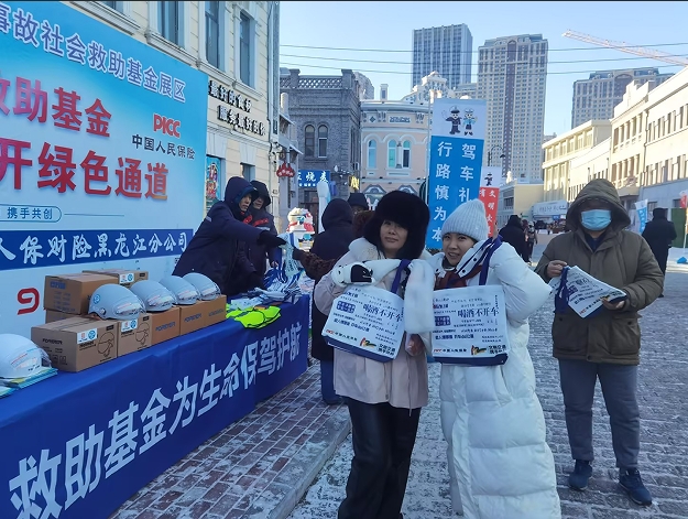人保财险黑龙江省分公司作为黑龙江省道路交通事故社会救助基金管理机构协同黑龙江省公安厅交通管理管局、哈尔滨市公安局交警支队在中华巴洛克风情街开展122“全国交通安全日”活动启动仪式。