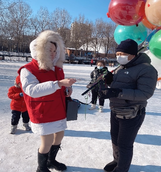 暖心服务,传递温情。志愿者团队向冰雪中的人们发放热帖、哈尔滨纪念章、交道宣传折页,与来自五湖四海的人们,共同体验亚冬会精神,为龙江体育精神发扬光大贡献自己的力量。