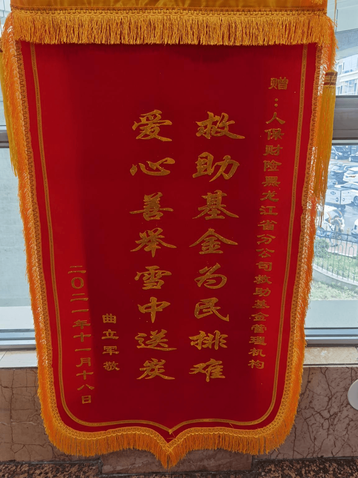 曲国志家属曲立军赠与道路救助基金管理机构锦旗